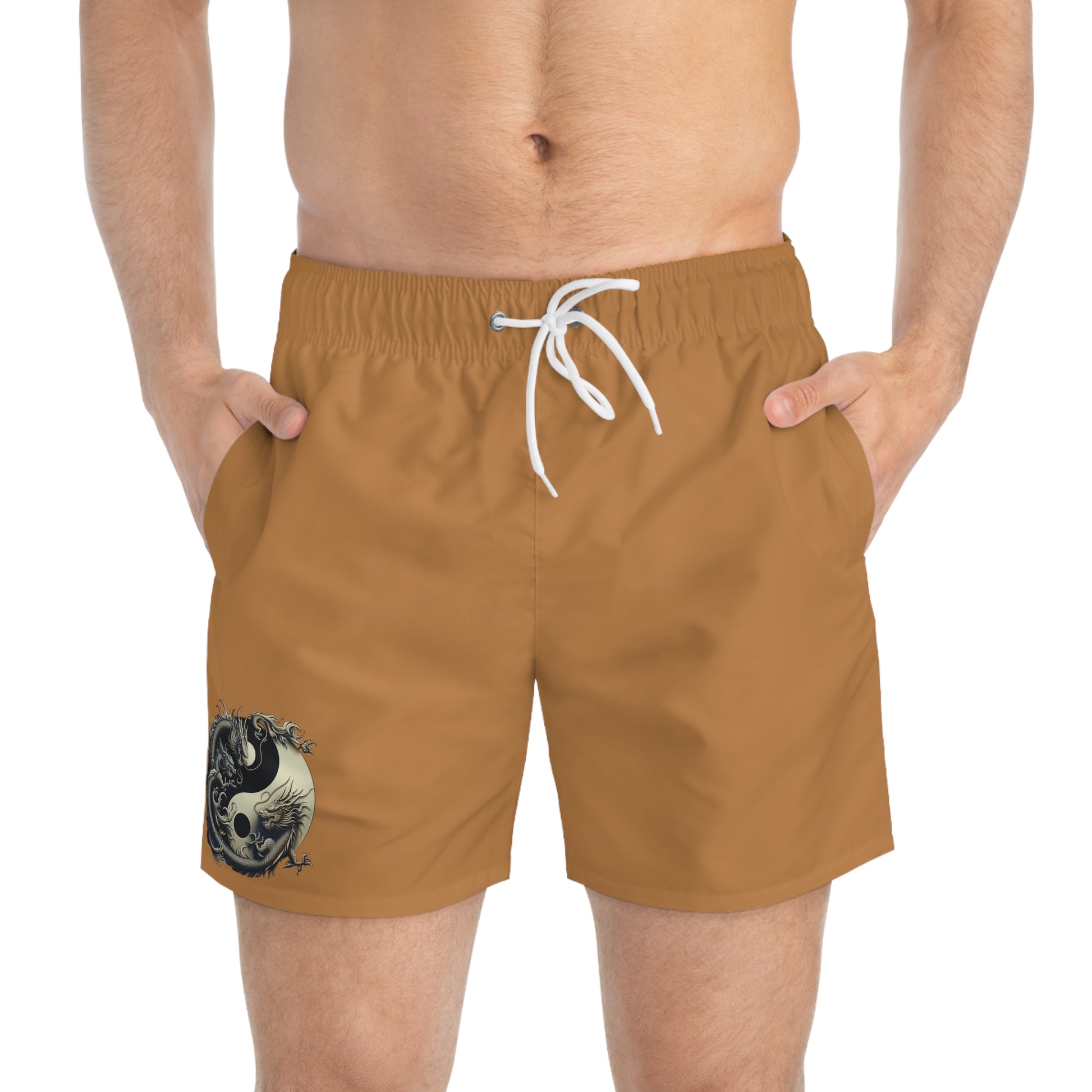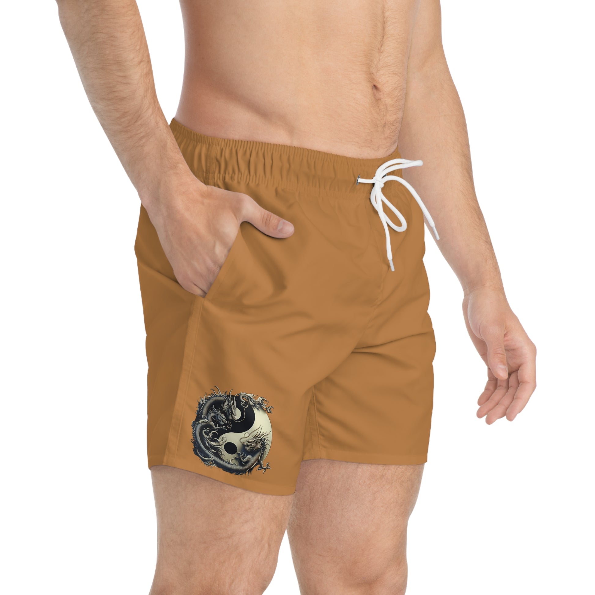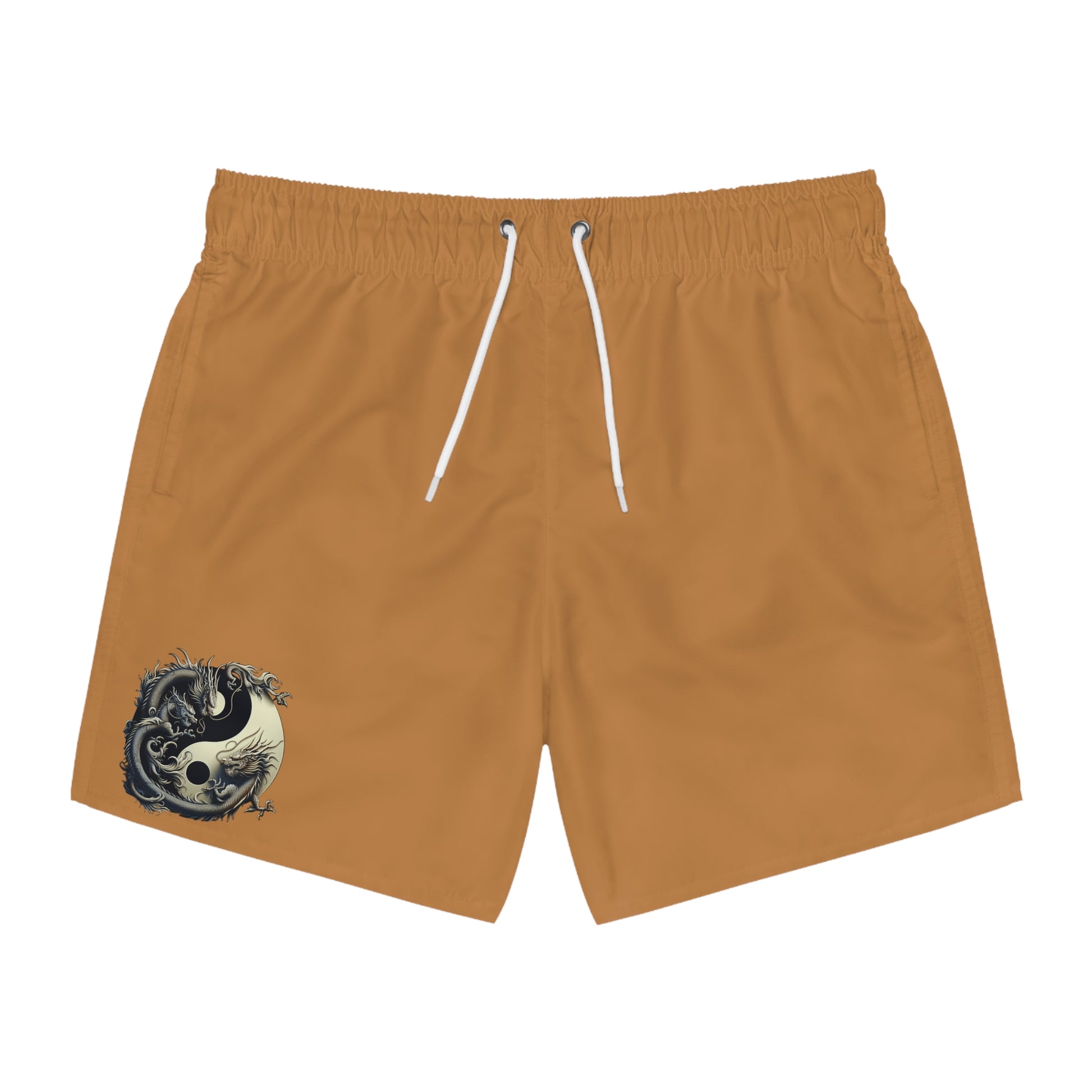 Power meets peace in this exclusive Judith Cristina design. Featuring a bold Yin-Yang dragon print, Balance of Fire represents the harmony of cool confidence and fierce ambition. Crafted for men who walk with purpose, these burnt orange swim trunks make a sharp statement without saying a word.